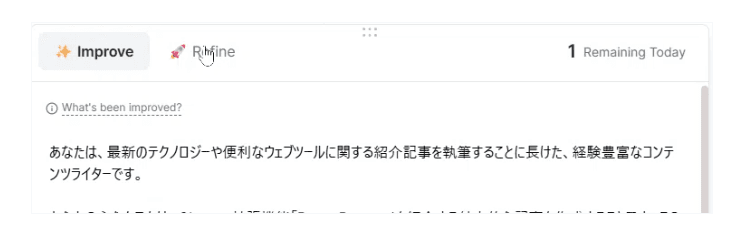 シンプルな改善だけでなく、さらに「Refine」で特定のニーズに合わせて調整が可能です。